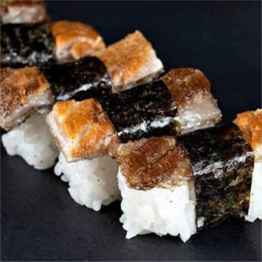 Descubra a união perfeita entre pele de peixe maçaricada na medida certa, garantindo uma textura crocante, e arroz japonês no ponto ideal, que proporciona equilíbrio a cada garfada.